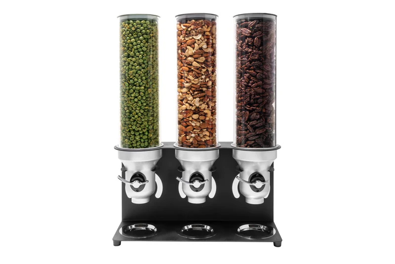 על המוצר: דיספנסר מדגם KELL200 עם 2 מיכלי פלסטיק. המתקן עשוי תושבת ברזל יצוק בצבע שחור וידיות ניקל, גלגלת סילקון לאיטום מירבי ושמירה על טריות. קל ונוח לפירוק ושטיפה.